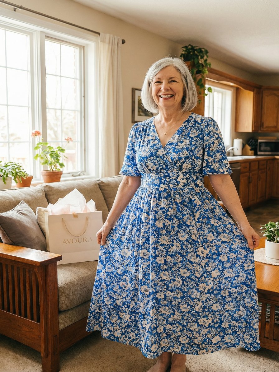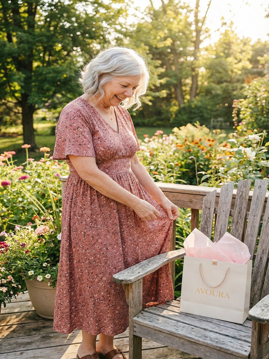 "I have not felt this good in a dress since I was a girl, but this floral midi dress makes me feel absolutely beautiful. The fit is flattering, the fabric is soft, and the print is gorgeous. I am 58 and I feel like a million euros in this. Thank you AVOURA."
