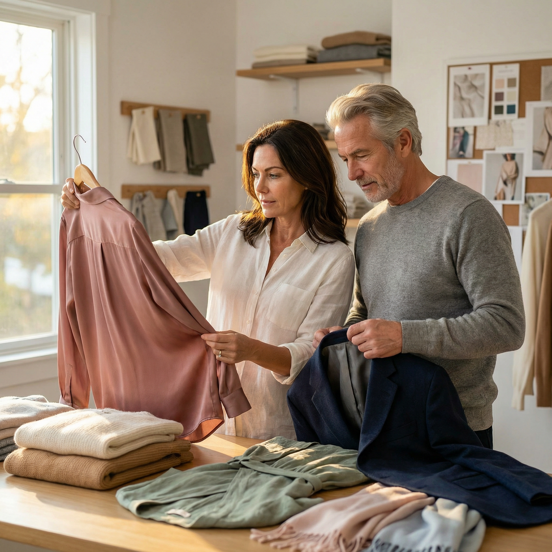 We are not a department store. We are not a fast-fashion retailer. AVOURA is a carefully curated online fashion destination, built by two people who are genuinely passionate about quality clothing. Every piece we offer has been personally selected by David and Anna for its craftsmanship, its comfort, and its ability to make you feel effortlessly elegant.